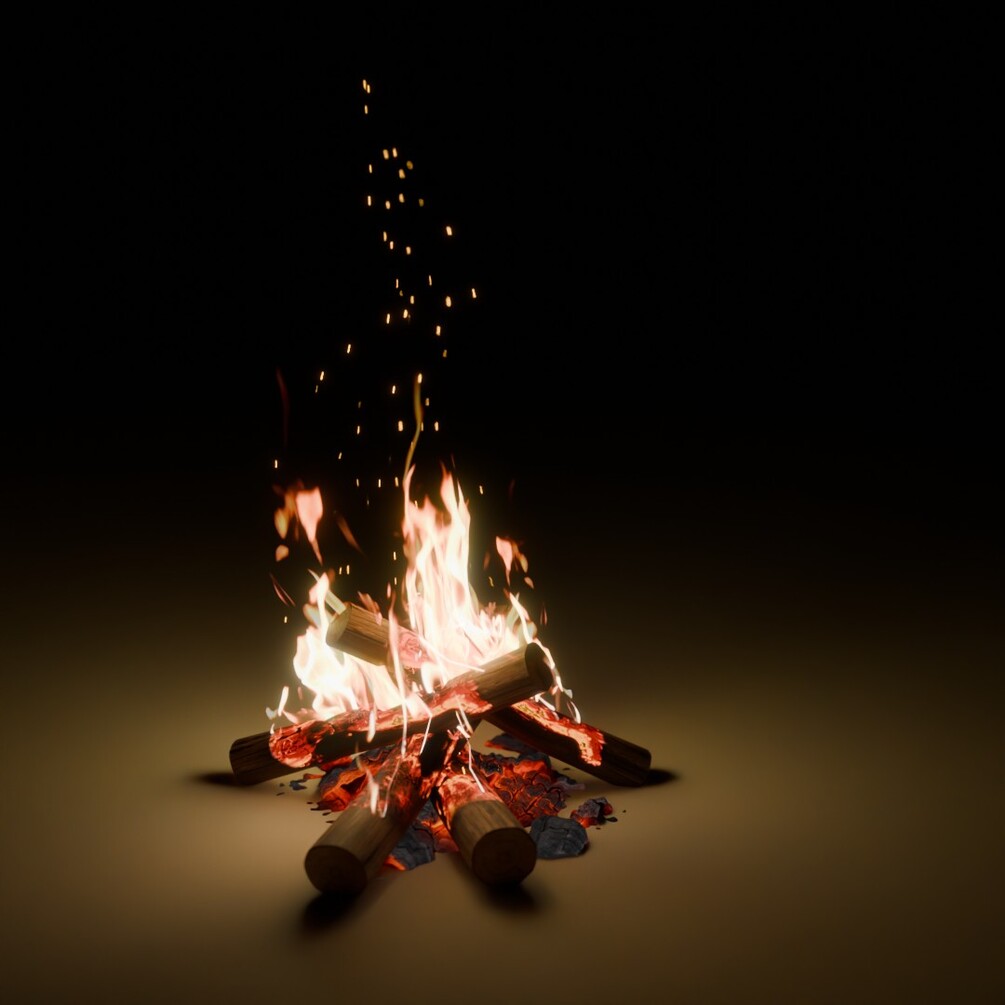 Simple setup of a camp fire, using a loop sequence of a fire, and particles to emulate sparks.